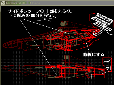 サイドポンツーンの上部を傾斜をつけて丸くするが納得いかない