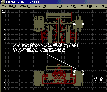 これは円筒を作り疑似集合演算と言う方法でこの円筒の形状で接して いる面を切り取る - フロントウイングは今回のフェラーリの特徴のV字型にする。